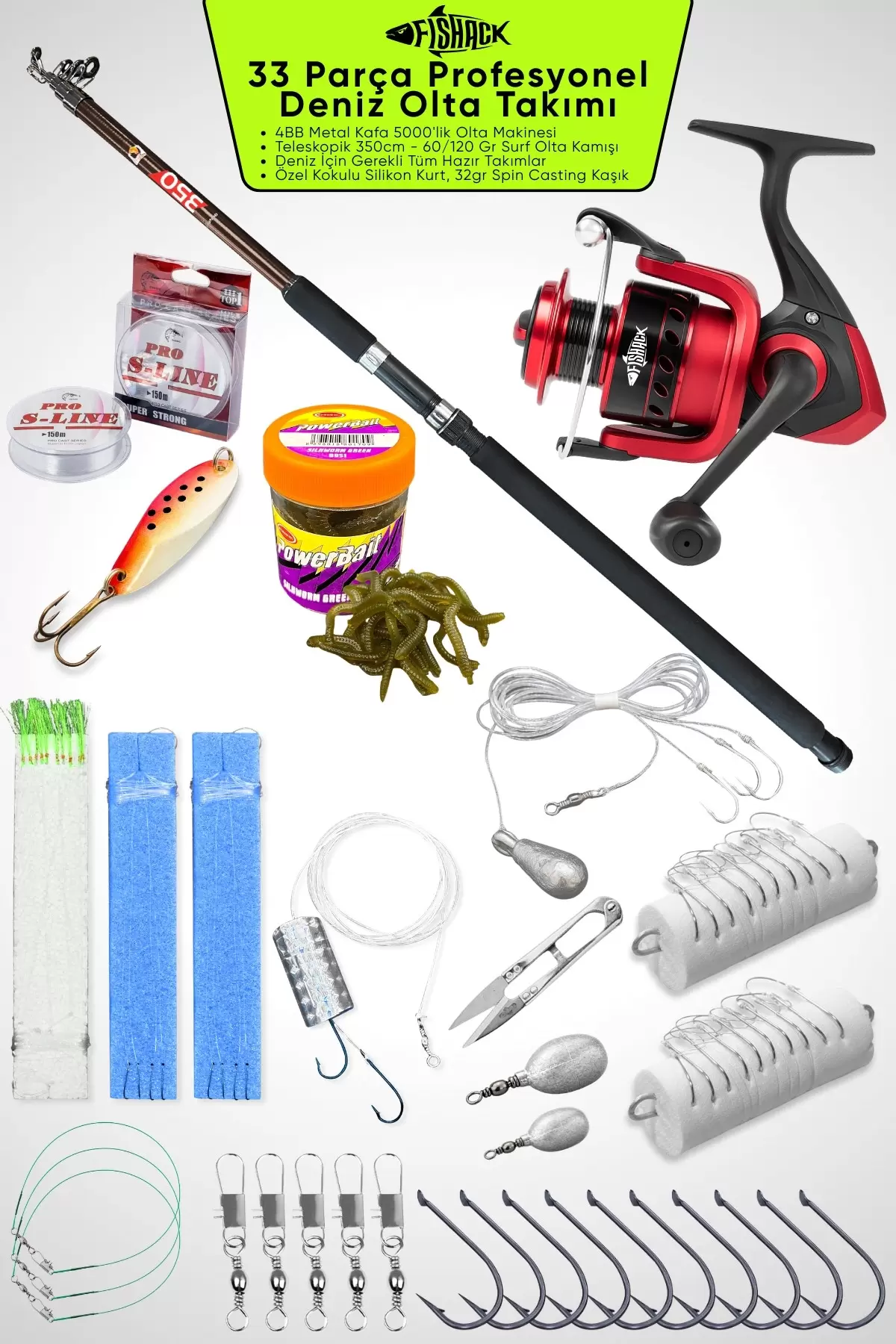 nDeniz odaklı hazırlanmış bu olta seti, kıyı balıkçılığına başlamak isteyen kullanıcılar ve güçlü bir ekipman seti arayan deneyimli kullanıcılar için kapsamlı bir çözümdür. Surf kamış, güçlü olta makinesi, misina, hazır takımlar, çapari, kaşık ve çeşitli aksesuarlarla deniz kıyısında ihtiyaç duyulan temel ekipmanları tek pakette sunar.n