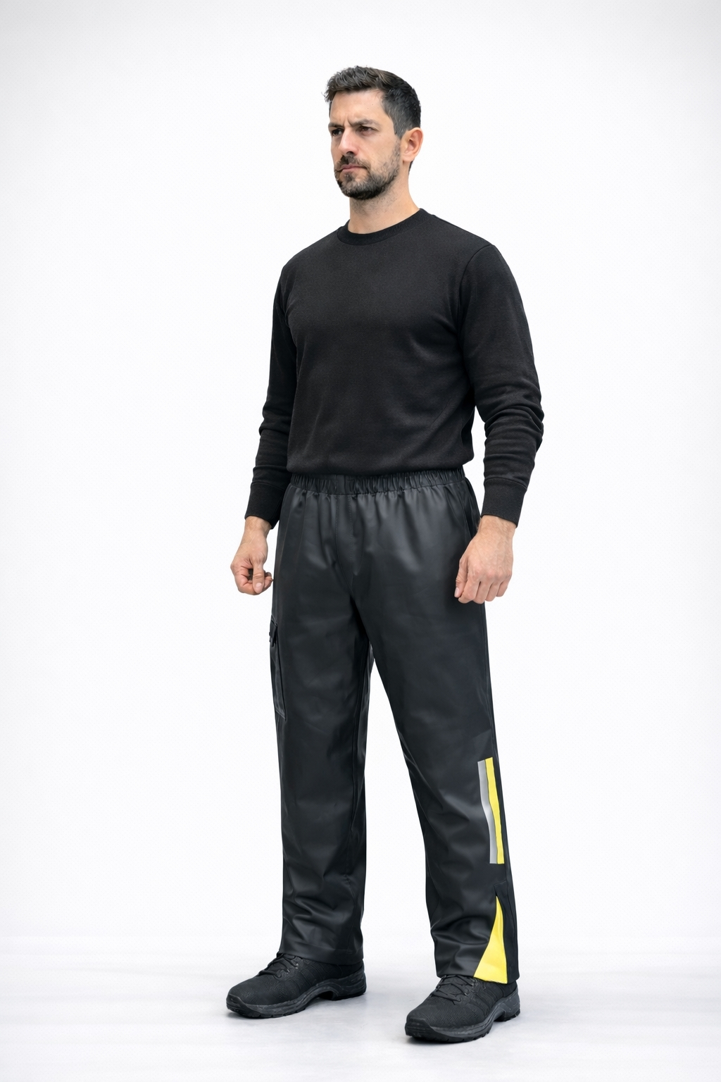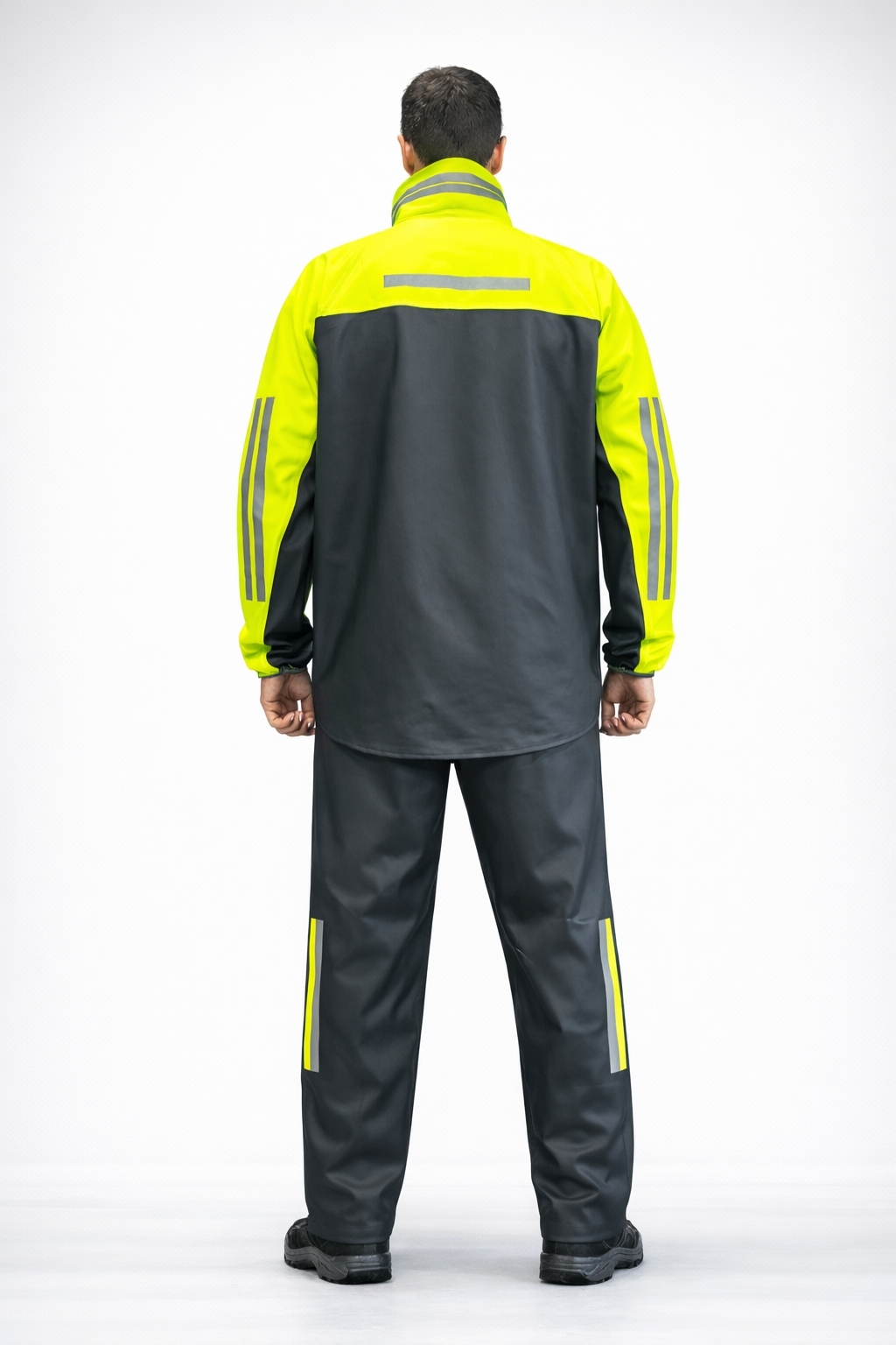 PVC bazlı dış yüzey, suyu yüzeyde tutarak iç katmana geçişi engeller. Bu yapı, özellikle şehir içi kurye kullanımında sürekli maruz kalınan yağışta avantaj sağlar. Rüzgarlı havalarda takım yapısı sayesinde vücut ısısının korunmasına yardımcı olur. Reflektif detaylar gece sürüşlerinde güvenliği artırır.