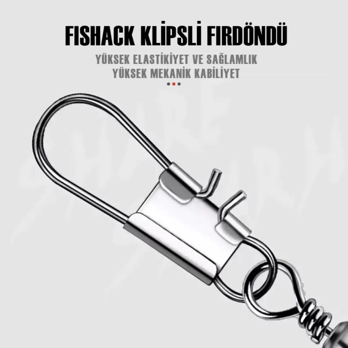 Fishack Paslanmaz Klipsli Fırdöndü Gümüş No: 5, paslanmaz çelikten üretilmiş dayanıklı bir bağlantı ekipmanıdır. Yüksek dönme kabiliyeti sayesinde misina burulmasını azaltır ve takım ömrünü uzatır. 4.2 cm uzunluğundaki kompakt yapısı ile hem kıyıdan hem tekneden yapılan avlarda güvenli kullanım sunar. Paket içerisinde 12 adet klipsli fırdöndü bulunmaktadır.