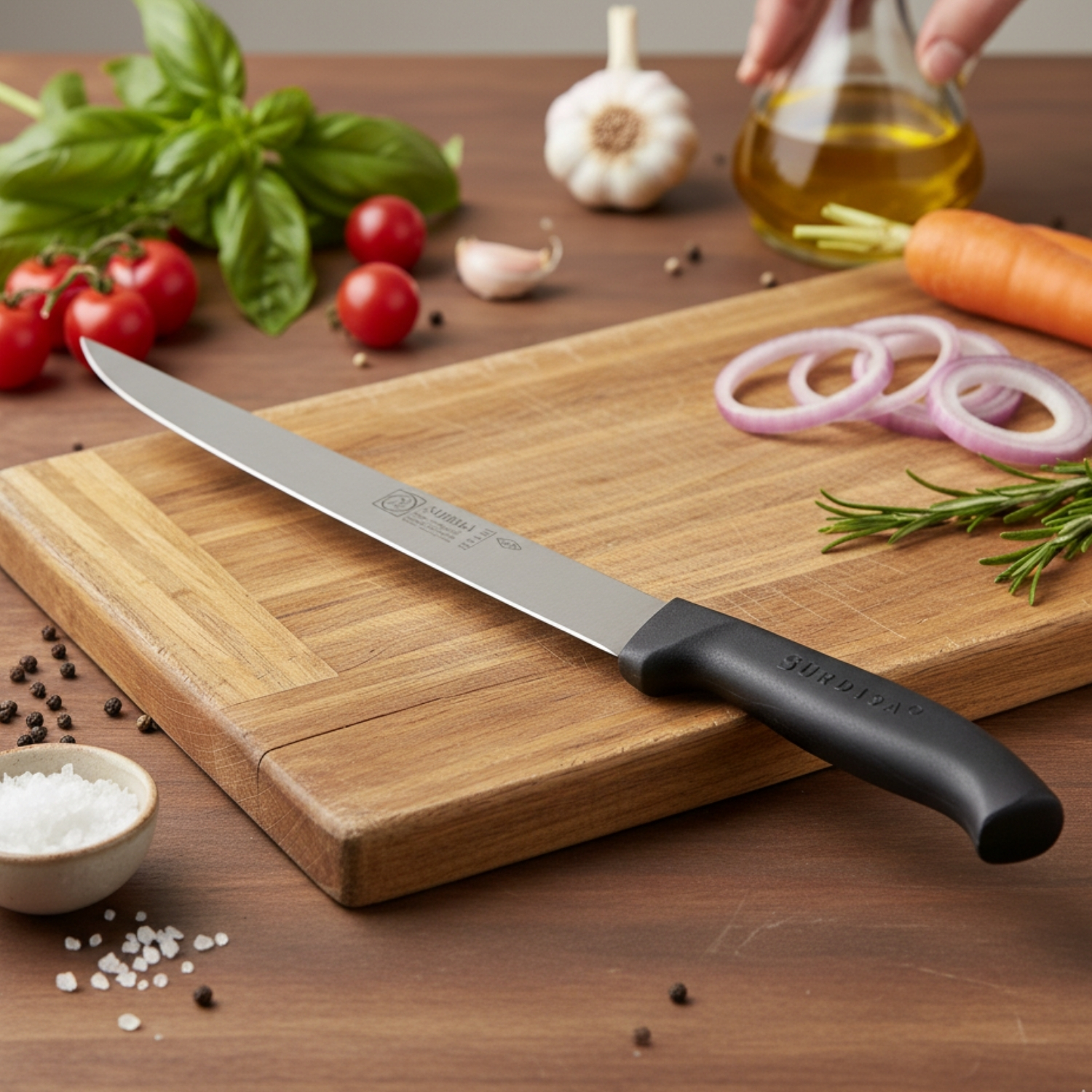 61160 Sürmene Fileto Bıçağı, balık ve et gibi hassas kesimler için özel olarak tasarlanmıştır. 23 cm uzunluğundaki ince ve esnek bıçağı, profesyonel ve ev aşçıları için ideal bir fileto kesim deneyimi sunar.