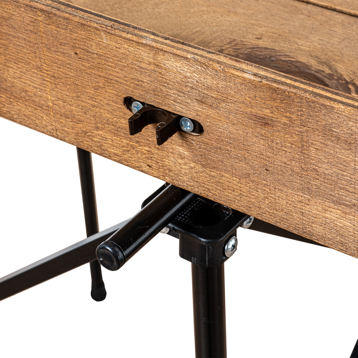 Dayanıklı yapısı ve zarif ahşap yüzeyiyle estetik bir görünüm kazandırırken, akordeon mekanizması sayesinde kolayca taşınabilir ve kurulabilir.