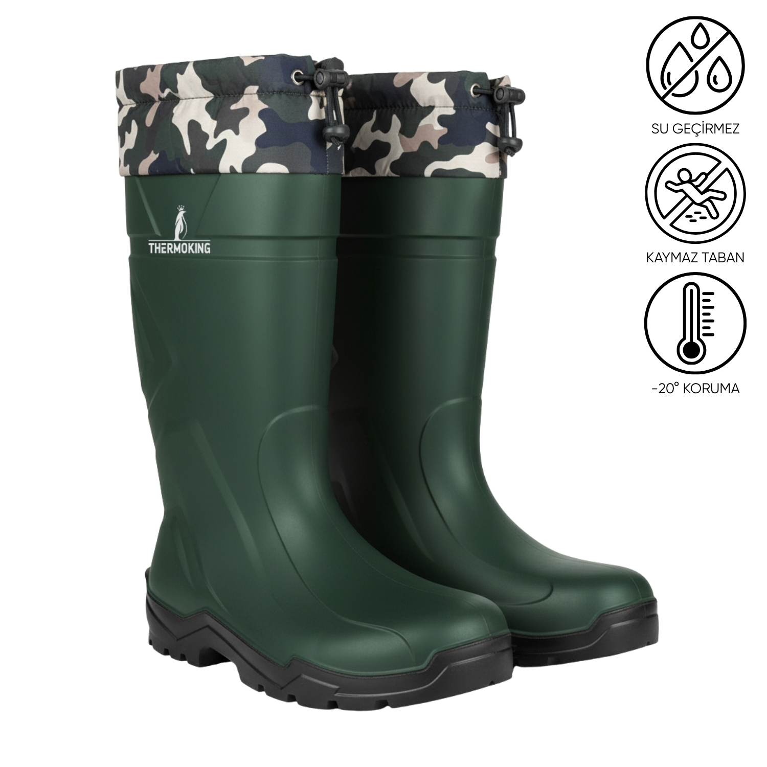Thermoking PU uzun konçlu iş çizmeleri, diz üstüne kadar uzanan yapısıyla maksimum koruma sağlar. Zorlu iklim koşulları ve ağır iş ortamlarında dayanıklılık, sıcaklık yalıtımı ve konforu bir arada sunar.