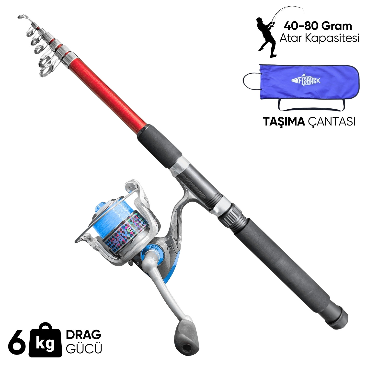 Olta Seti - 300cm Olta Kamışı 40-80GR / 4000'lik Olta Makinesi (XA-Kırmızı) - Taşıma Çantalı