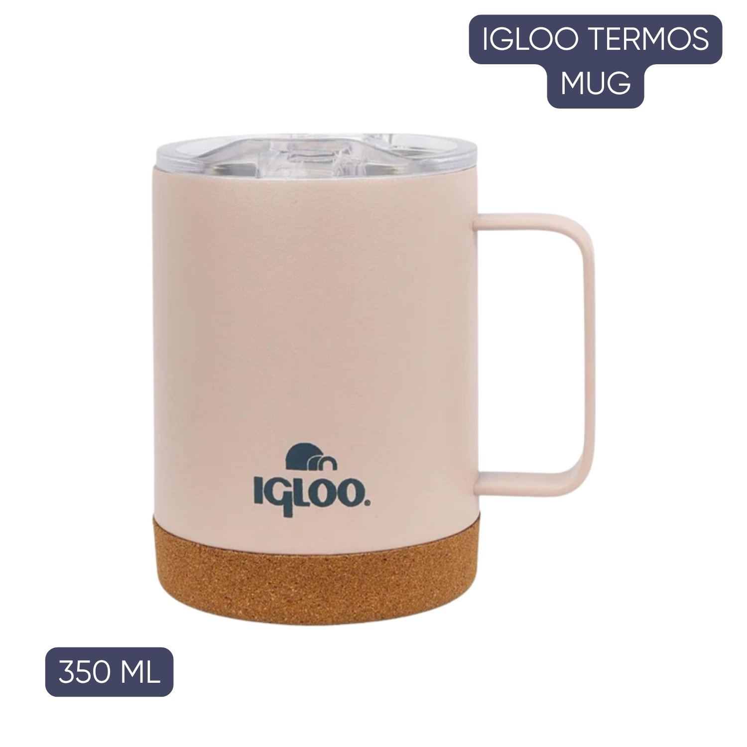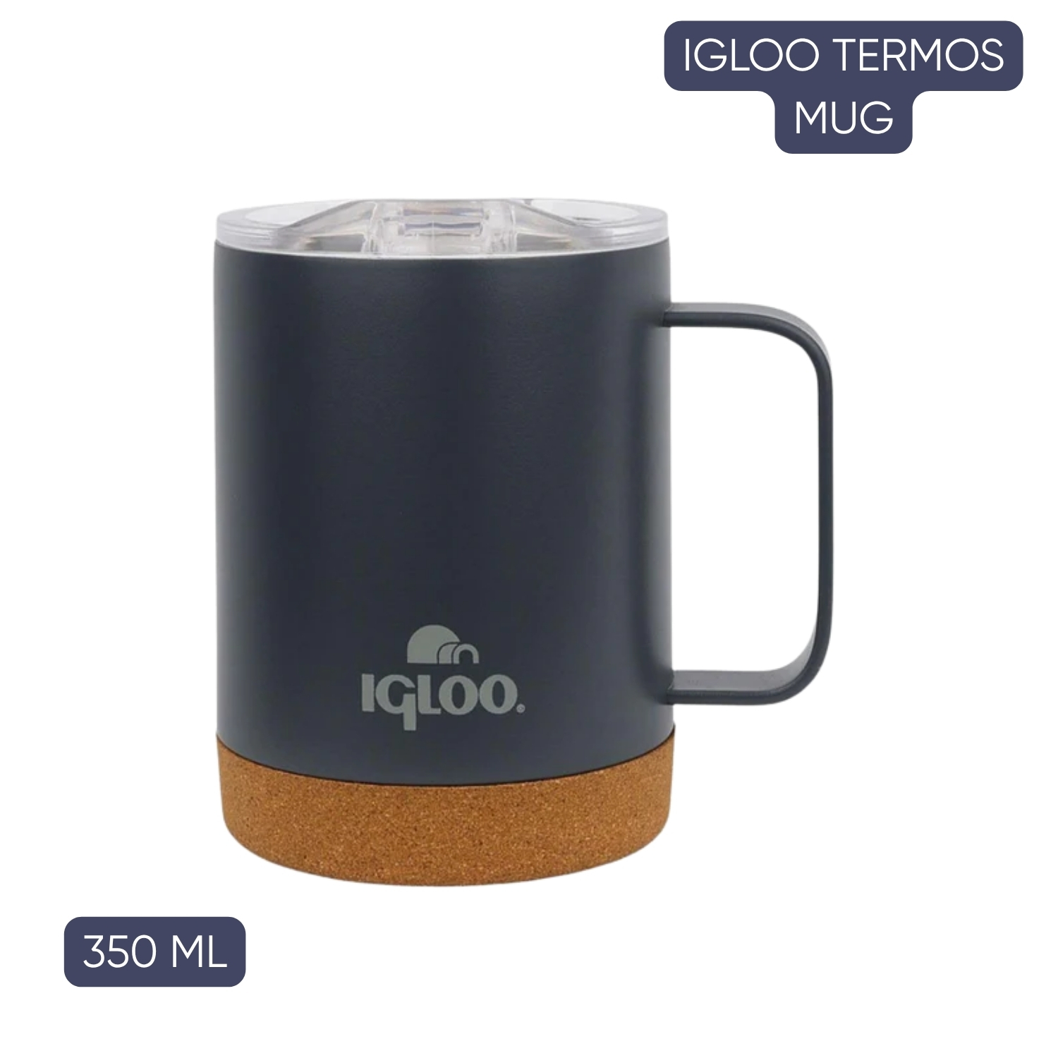 304 kalite paslanmaz çelik gövde ve çift duvarlı yapısı ile içeceğinizi uzun süre sıcak veya soğuk tutar. Sentetik mantar tabanı terlemeyi önler, ergonomik kulpu kolay tutuş sağlar. - 1 Adet Igloo Cork Çelik Mug Termos – Füme – 350 ml (205696)