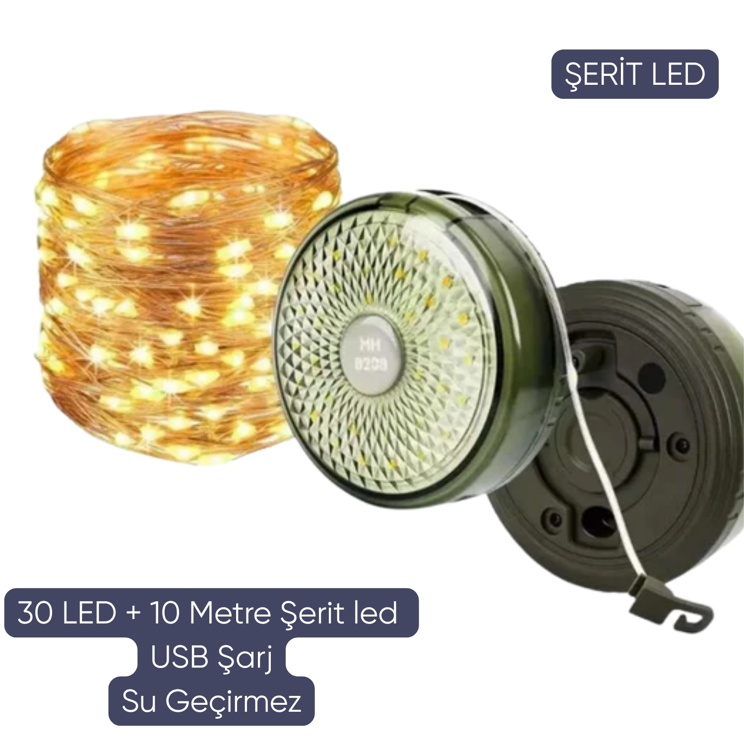 - Güçlü Aydınlatma: 10 metrelik şerit LED kamp lambası ile geniş alanları aydınlatır.