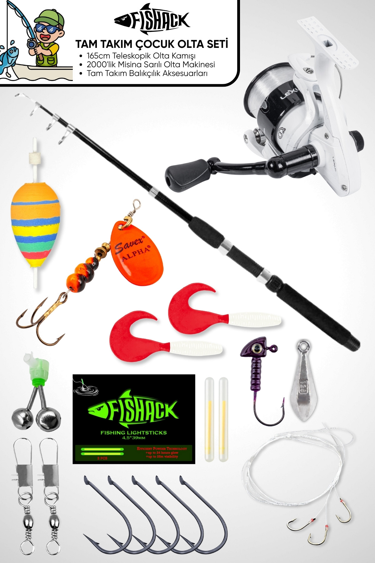 - Toplam 18 parçadan oluşan kapsamlı çocuk olta seti