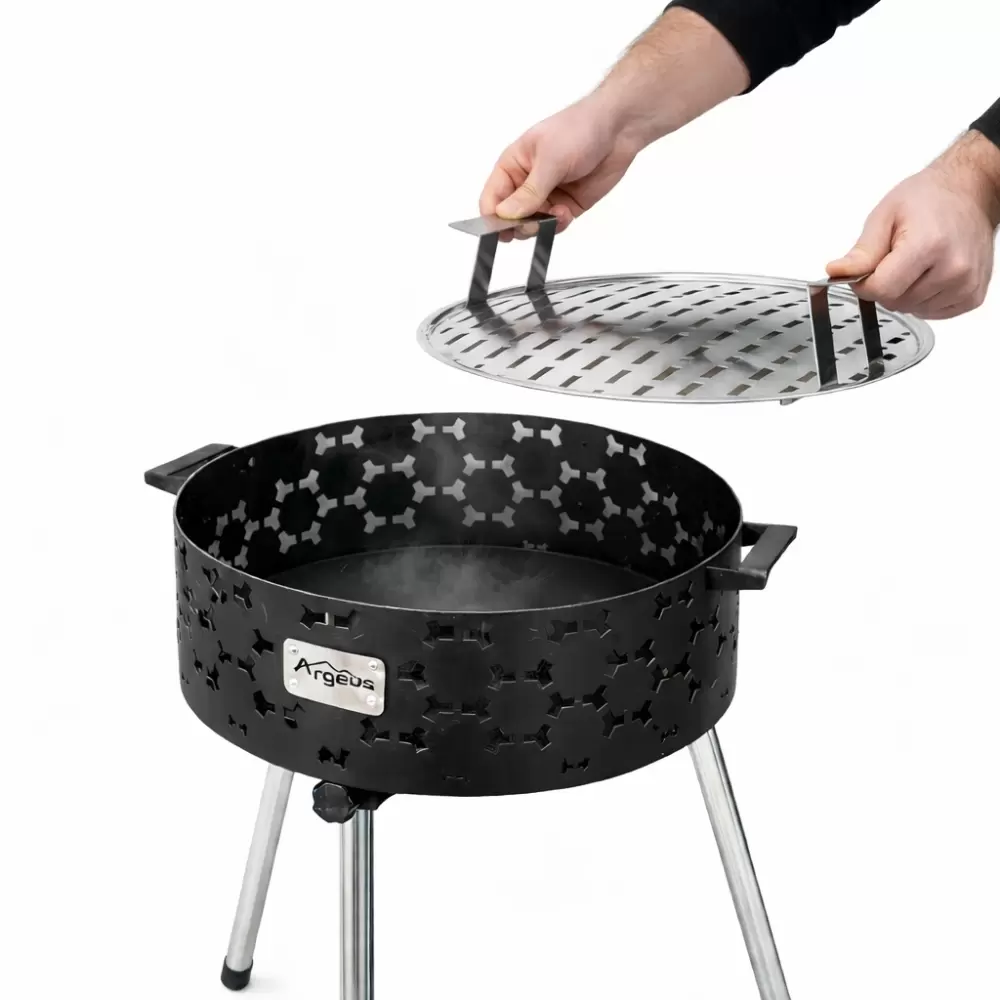 Gerçek kullanımda ST37 gövde sacı, yüksek ısı altında formunu korur. 430 krom ızgara yüzeyi, gıda temasına uygun dayanıklı yapı sunar ve temizliği pratiktir. Sökülebilir ayak yapısı sayesinde ürün kısa sürede kurulabilir ve kullanım sonrası kompakt şekilde toplanabilir.