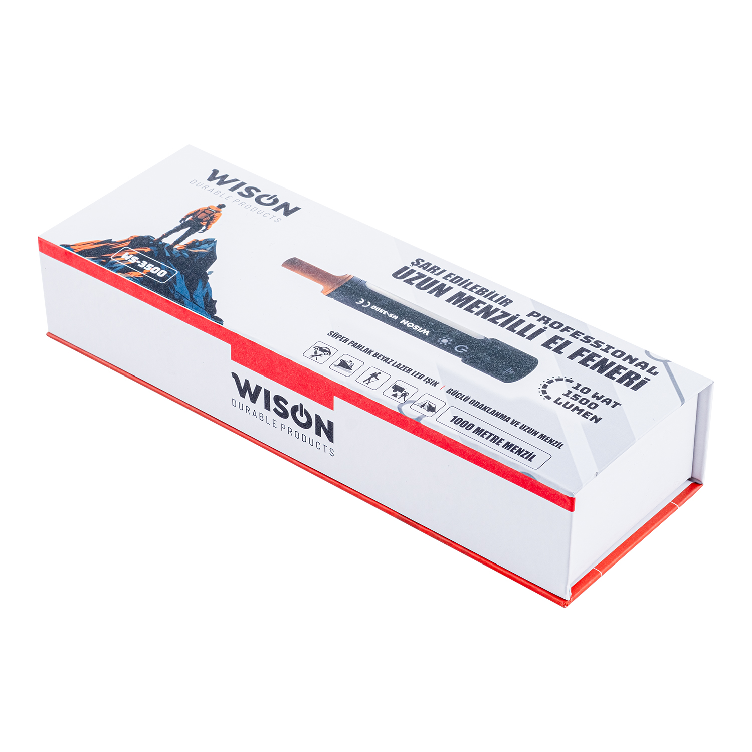 Wison WS-3500, güçlü aydınlatma kapasitesi ve fonksiyonel tasarımı ile profesyonel kullanıcılar ve outdoor meraklıları için geliştirilmiş yüksek performanslı bir el feneridir. 1500 lümen süper parlak beyaz lazer ışığı ve 1000 metreye kadar uzun menzilli aydınlatma özelliği ile her ortamda mükemmel görüş sağlar.