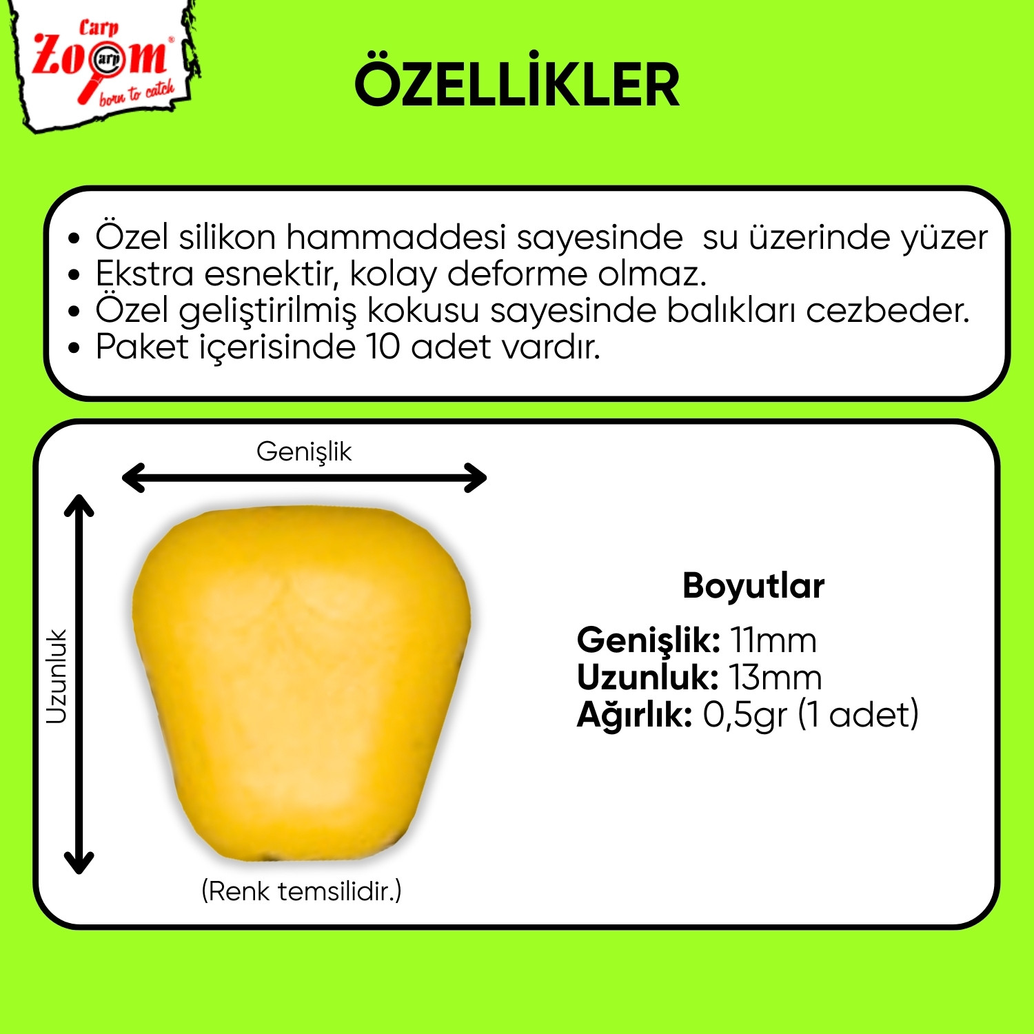 Fiyat–performans açısından avantajlı bu silikon mısır yem, sazan balıkçılığı için pratik ve uzun ömürlü bir çözüm sunar. Su üzerinde yüzen yapısı ve özel kokusu sayesinde av verimini artırmaya yardımcı olur.